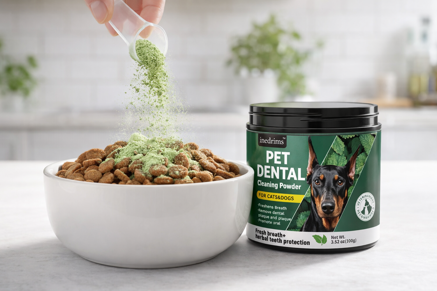 One of the main causes of bad breath in dogs is tartar buildup on the teeth. This powder works at the source to reduce odor-causing bacteria. Daily use of dental powder helps maintain clean teeth, healthy gums, and overall oral hygiene without the need for brushing.