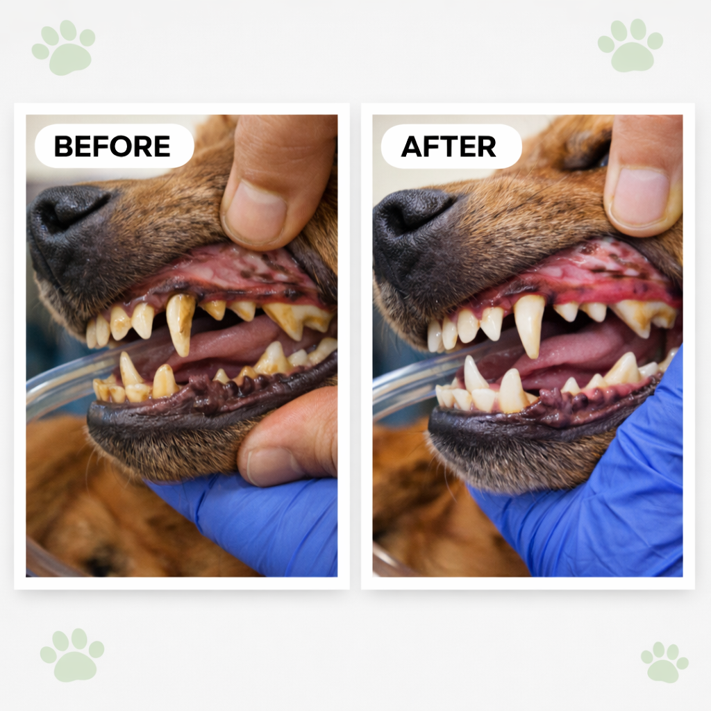 Many owners notice better breath within 1–2 weeks. Teeth take longer. Plaque builds up slowly, so it also breaks down slowly. With daily use, visible improvement usually happens within 4–8 weeks.